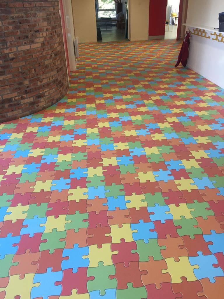 Dans cette établissement scolaire proche du HAVRE, le choix d'un revêtement de sols PVC imitation puzzle a été fait , quoi de mieux pour des enfants!